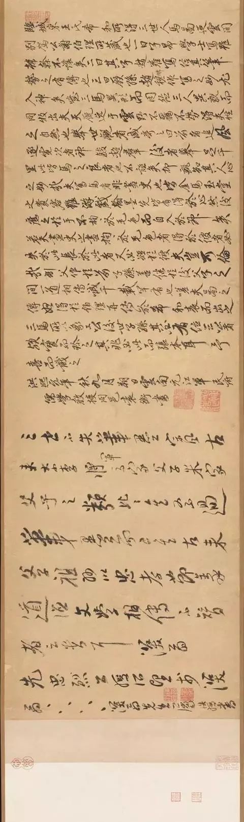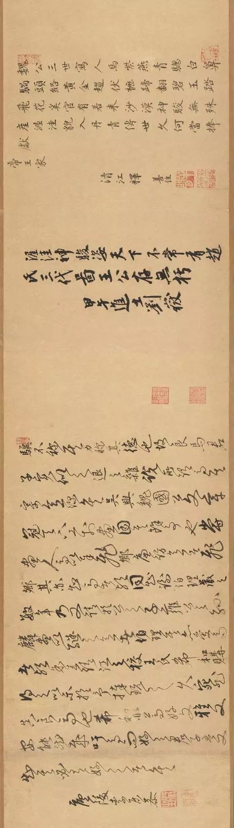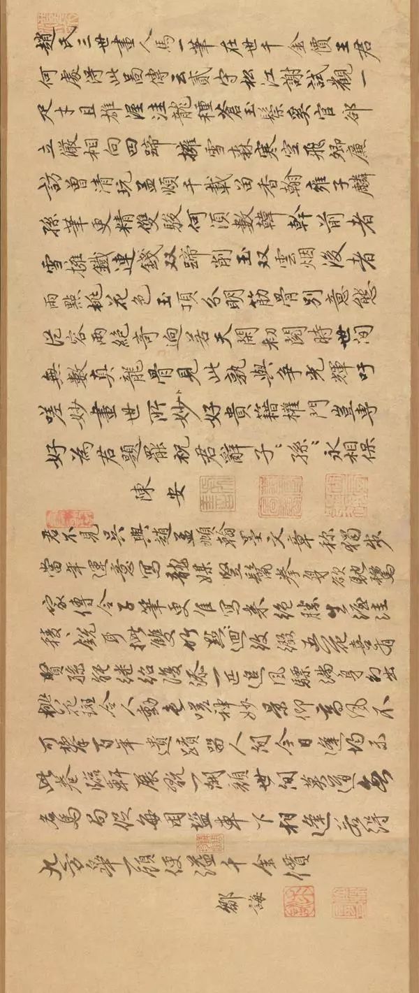 谓赵雍笔法得曹霸为多,赵麟笔法得韩干为重,赵孟頫则“兼曹韩而获其神妙”,从这三件祖孙三代的合卷中可见赵氏鞍马东说念主物的发展和沿革。
