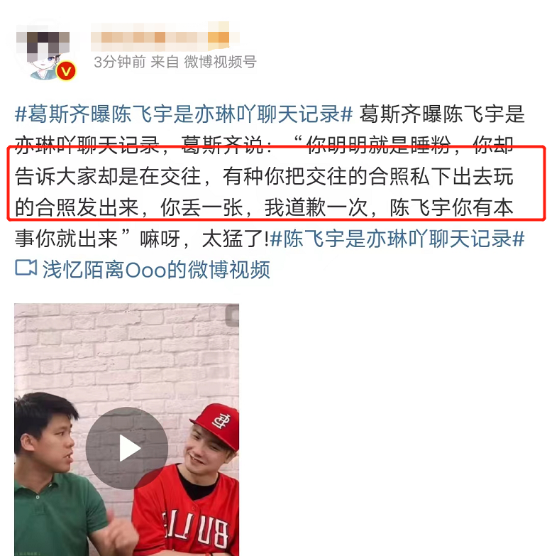 葛斯都还喊话陈飞宇,有种就把来回时出去玩的合照发出来,惟一能发出来,他必定谈歉。在视频的临了,葛斯都还径直喊话陈凯歌导演,称要是他言语有错的场所,接待责难也接待他拿任何的字据出来,他所说的东西都是有技术依据的。格调至极执意了。