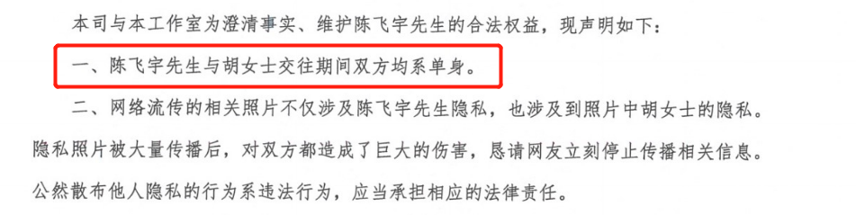 本年三月份陈飞宇和女网红奥秘曝光,事件闹得沸沸扬扬。陈飞宇责任室发布声明,在声明中强调,陈飞宇和胡女士也曾“来回”过,且其时两东谈主均为独身,线路两东谈主是矜重来回相干,但是并莫得正面辟谣睡粉这一瞥为。